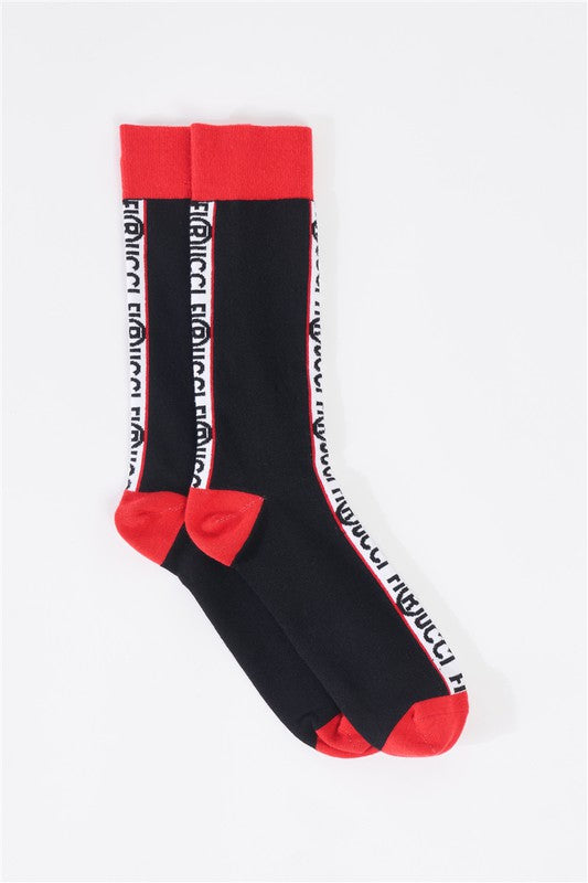 Black & Red Mid Calf Logo Text Detail Socks